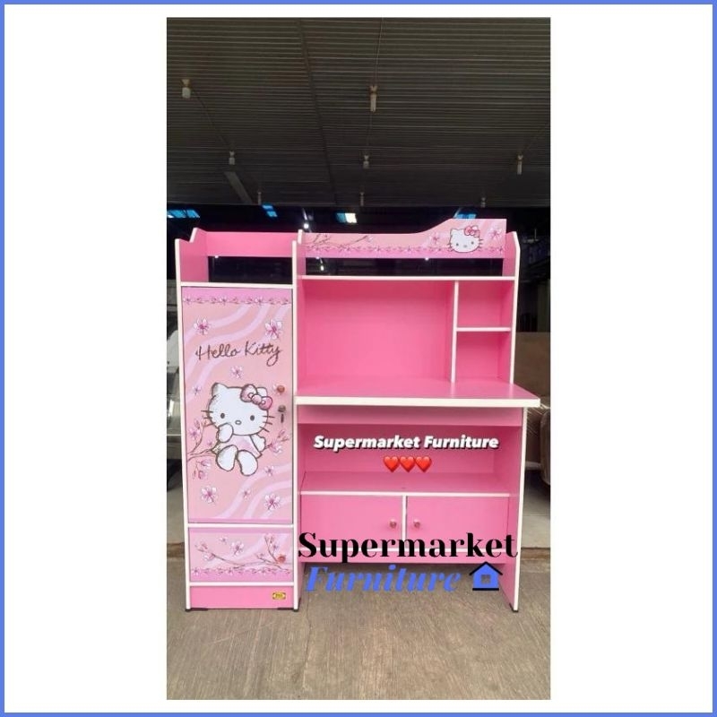 MEJA BELAJAR ANAK KARAKTER PINK HELLO KITTY SD KT 12 112 Meja Belajar Minimalis Dengan Laci/Rak Murah Kualiatas Premium