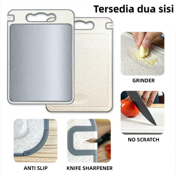 TERLARIS TALENAN STAINLESS 2 SISI / DOUBLE SIDED CUTTING BOARD / TALENAN MULTIFUNGSI DENGAN PEMARUT DAN PENGASAH