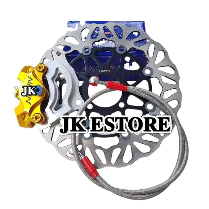 Paket Kaliper 2 Piston Yamaha MIO, Honda Beat Vario Scoopy Genio + Baut Disc 2PCS + Selang Rem Warna 95CM + Piringan 26
