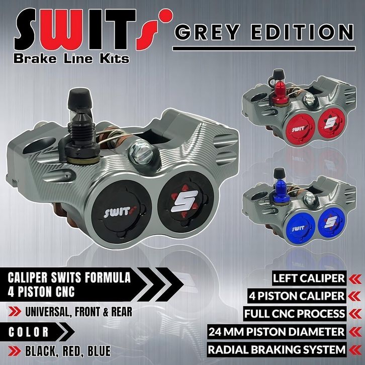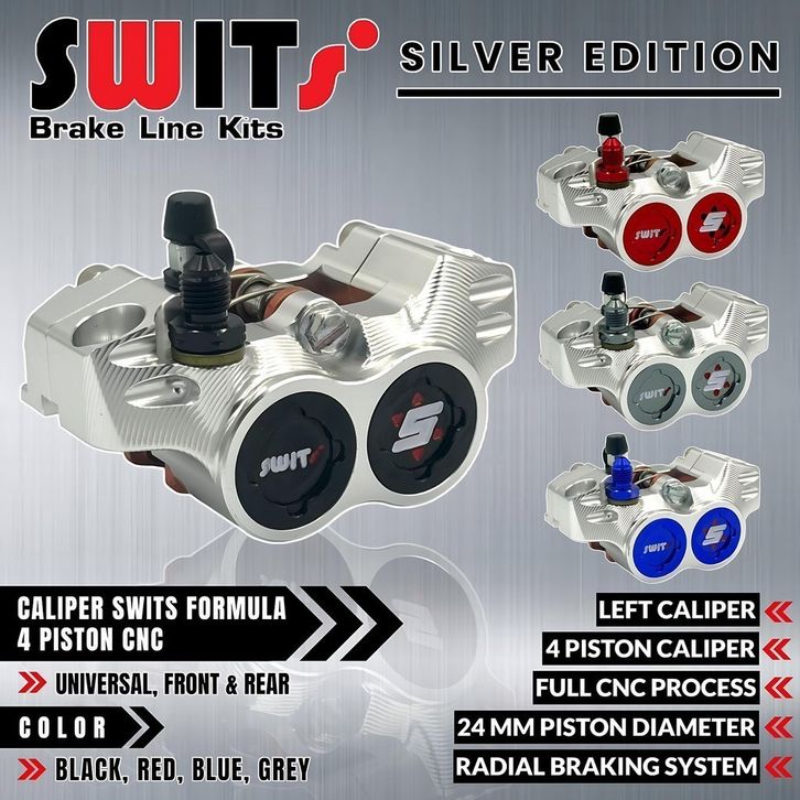 Kaliper SWITS FORMULA 4 Piston COIN KIRI Bahan Full Aluminium CNC
