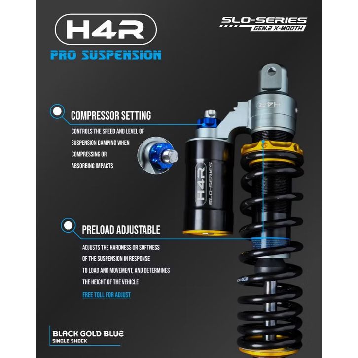 Shockbreaker H4R nitron Tabung Bawah 330MM 340MM Motor Matic Universal Vario 125 150 160 Stylo 160 Beat Scoopy Genio Xr