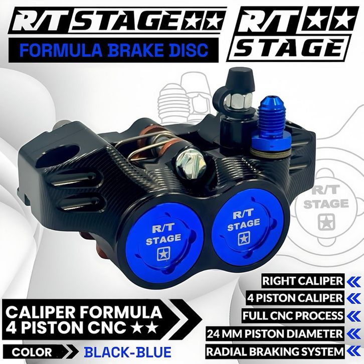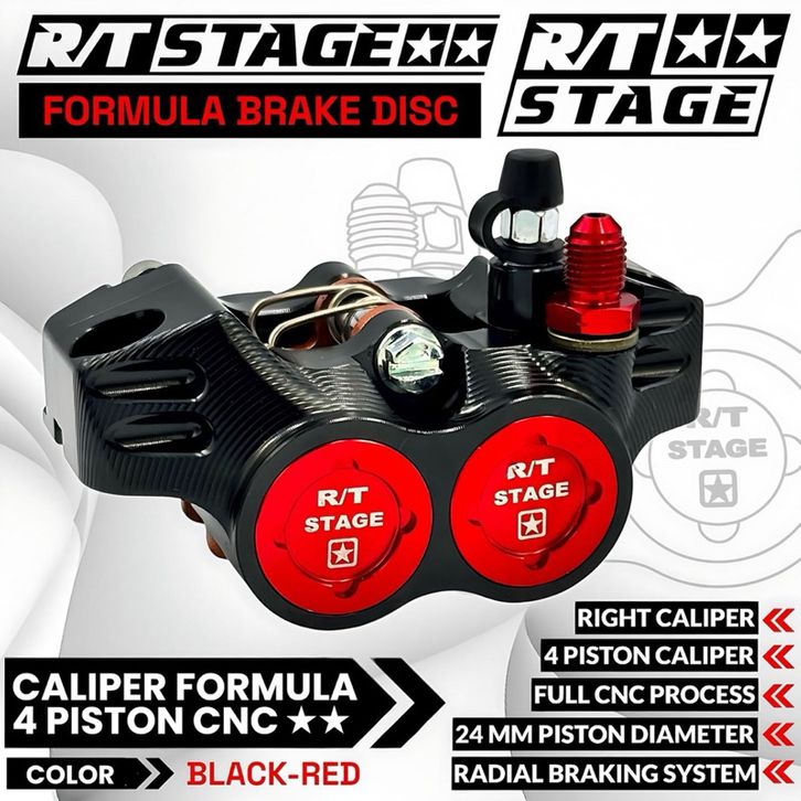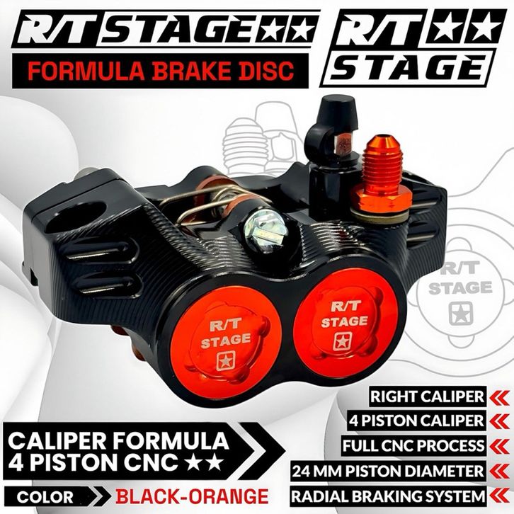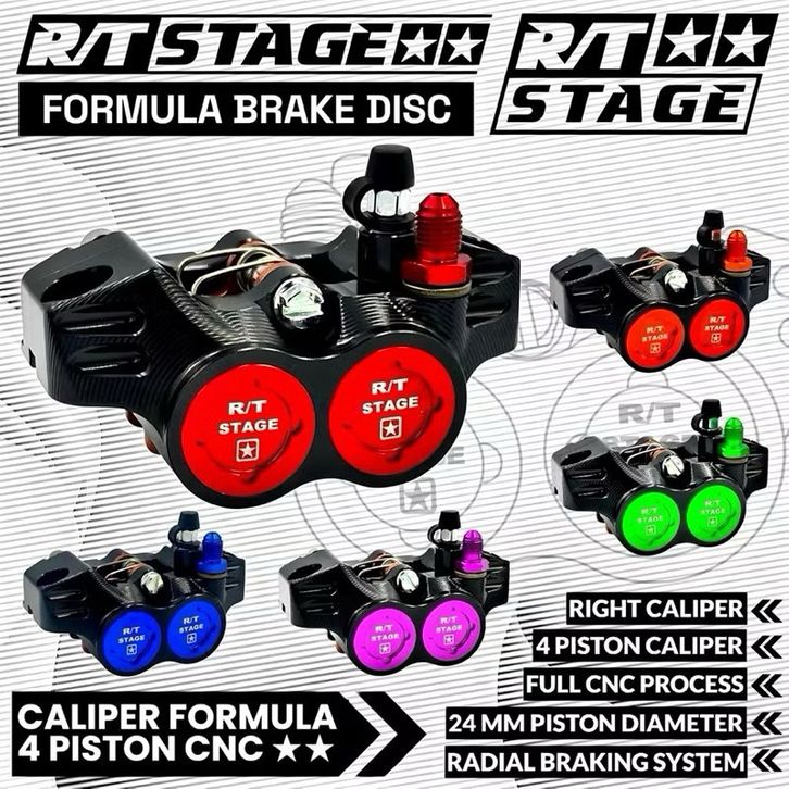 Kaliper RT/STAGE Formula 4 Piston / Monoblok Kiri Kanan Universal Nmax Pcx Aerox Vario Scoopy Beat Mio Xeon Vixion Jupi