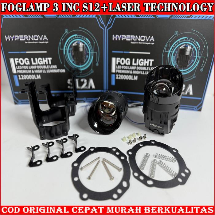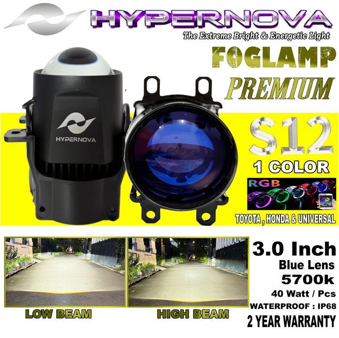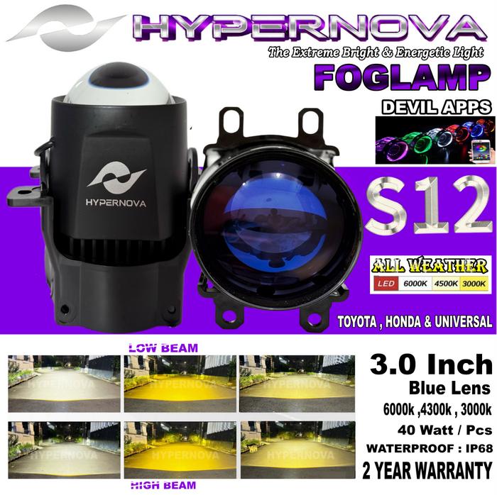 HYPERNOVA - ORIGINAL LAMPU FOGLAMP BILED S12 80 WATT BLUELENS FOGLAMP 3 WARNA 1 WARNA LAMPU MOBIL