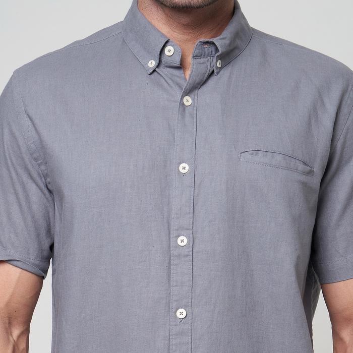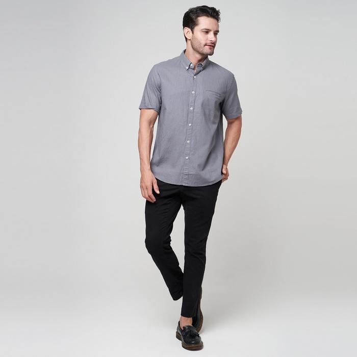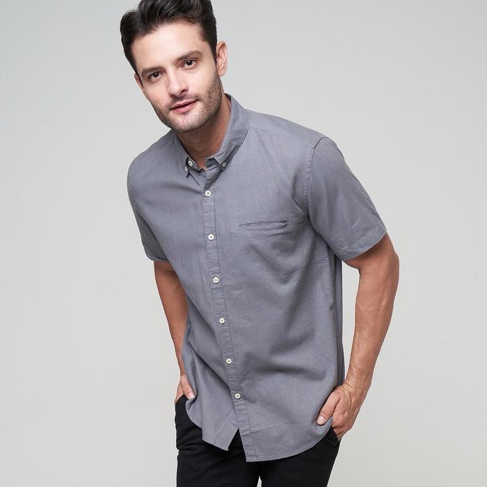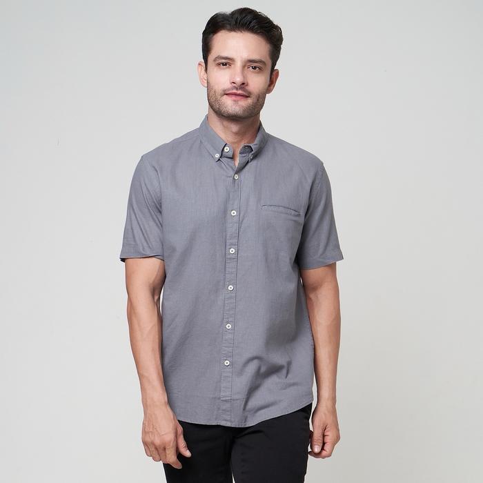 PETERNATION KEMEJA PRIA LINEN PENDEK KERAH BASIC GRAY REGULAR FIT CASUAL DARK FORMAL - S