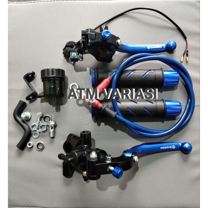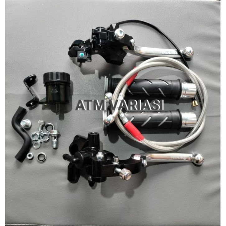 PAKET 4 ITEM MASTER REM ACCOSTATO 1 TABUNG SET KIRI DAN KANAN PLUS HANDGRIP MOTIF SISIK + JALU STANG CNC + SELANG REM P