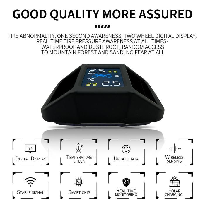Solar TPMS Motor Waterproof Tire Pressure Monitor Tekanan Ban Angin