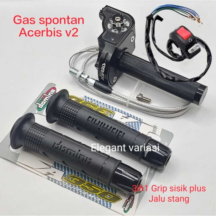 TERLARIS PAKET 3IN1 GAS SPONTAN ACERBIS + HANDGRIP SISIK DOMINOL + JALU STANG GAS SPONTAN KONTAN ACERBIS FULL CNC PLUS 1