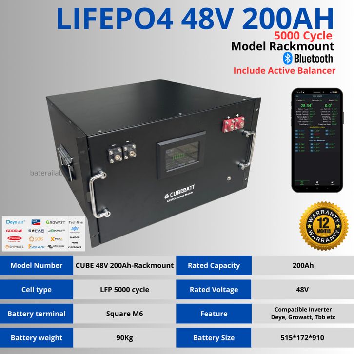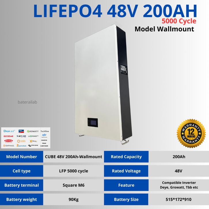 Baterai Lifepo4 48V 200AH Baru 5000 Cycle Untuk PLTS Solar Panel AGV Forklift Masa Pakai 5-10 Tahun