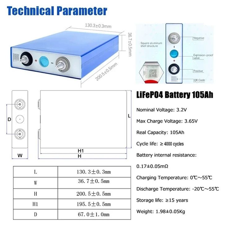 Baterai Lifepo4 Baru 12v 105AH Brand EVE 5000 Cycle untuk UPS Solar Panel