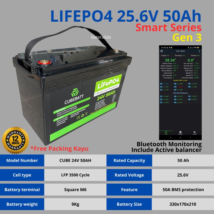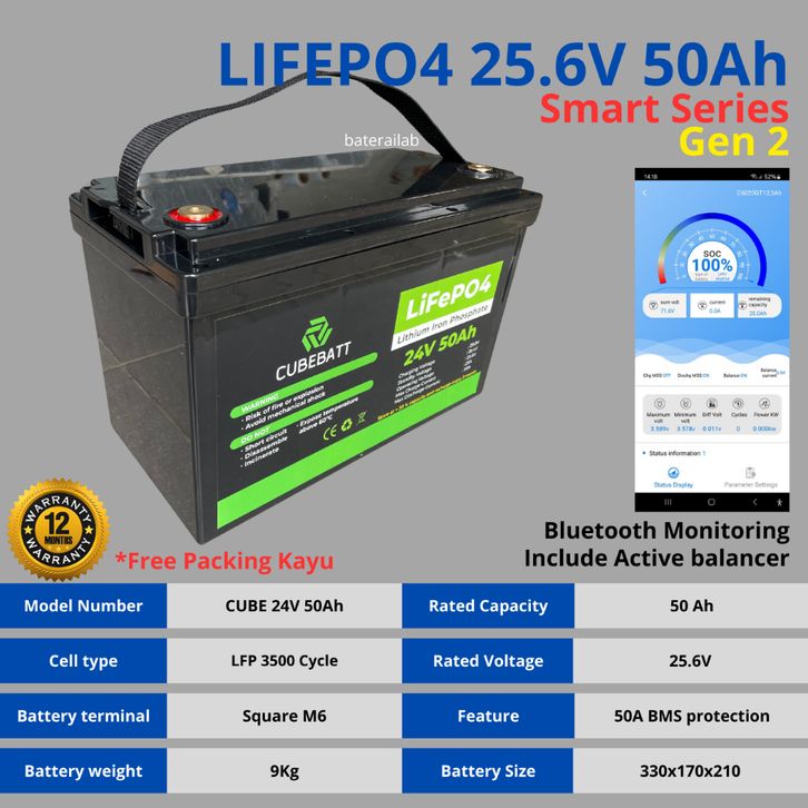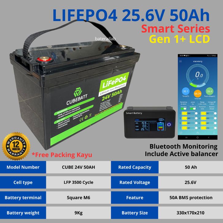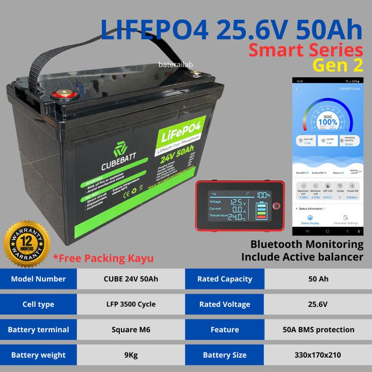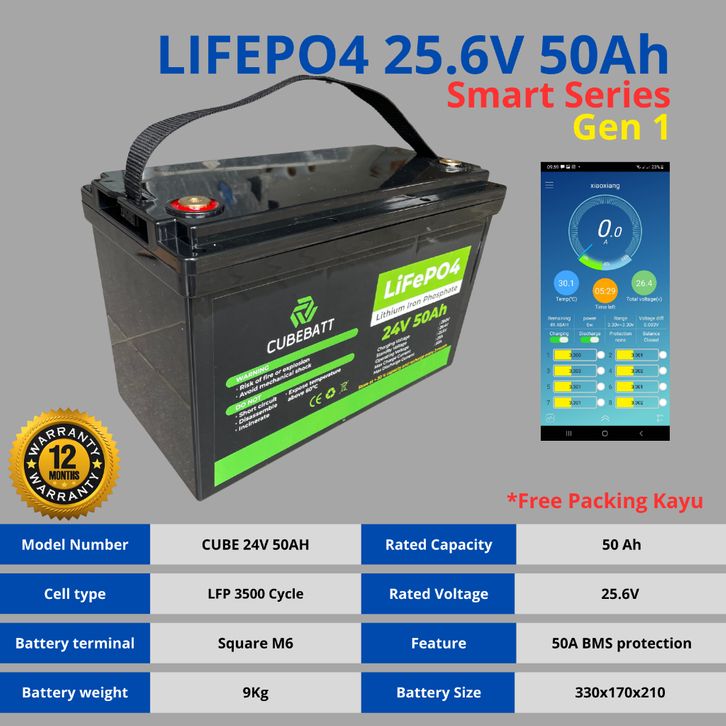 Baterai Lifepo4 24V 50Ah 3000 Cycle Design Life 5-10 Tahun Untuk PLTS Solar Panel Starlink