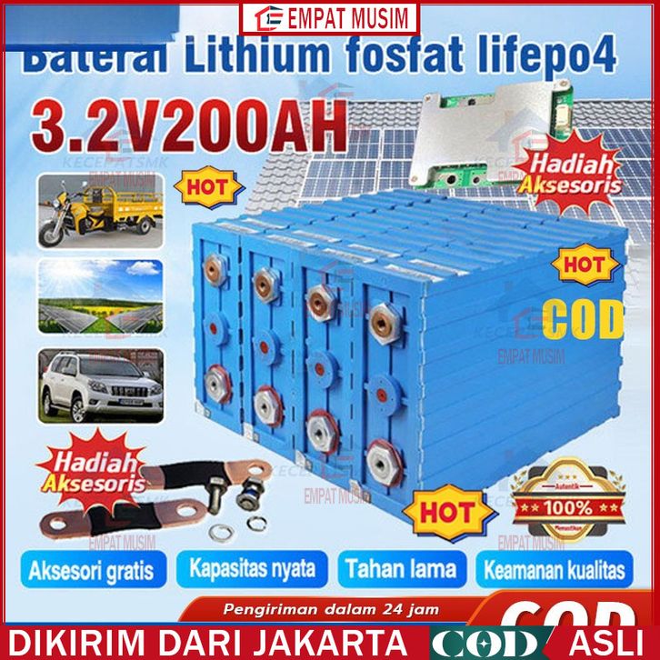 Lifepo4 Baterai 12V Baterai Surya Kekuatan Besar 3.2V 30ah/120ah/200ah Baterai Lithium Iron Baterai 100ah 12V 48V