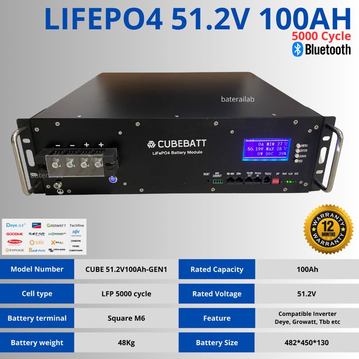 Baterai Lifepo4 Baru 51.2V 100AH 5000 Cycle Rackmount Match Inverter Growatt Deye Zamdon PLTS