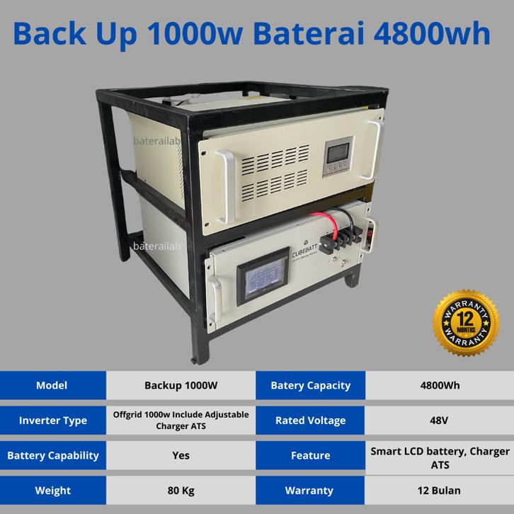 Paket Backup Daya 1000 Watt untuk rumah setara 450VA sampai 900VA Include Adjustable Charger ATS