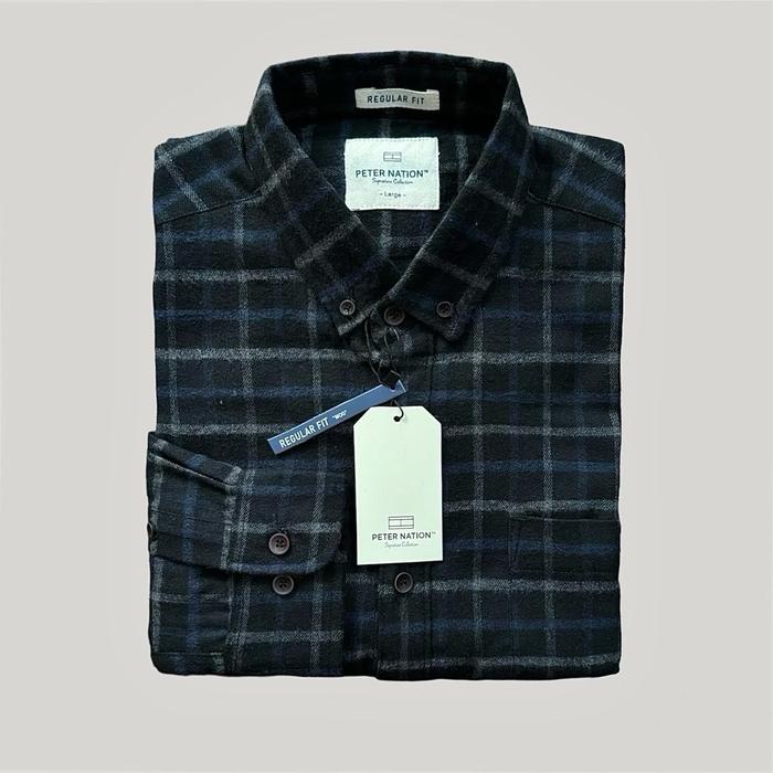 PETERNATION KEMEJA FLANEL WOOL BASIC PANJANG REGULAR FIT PRIA BAJU CASUAL KERAH HITAM MOTIF KOTAK HIGH DISTRO T0P - S