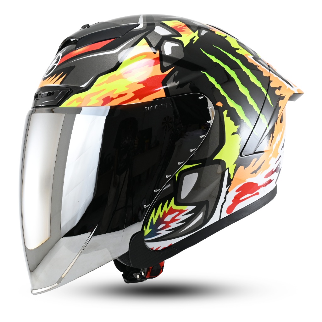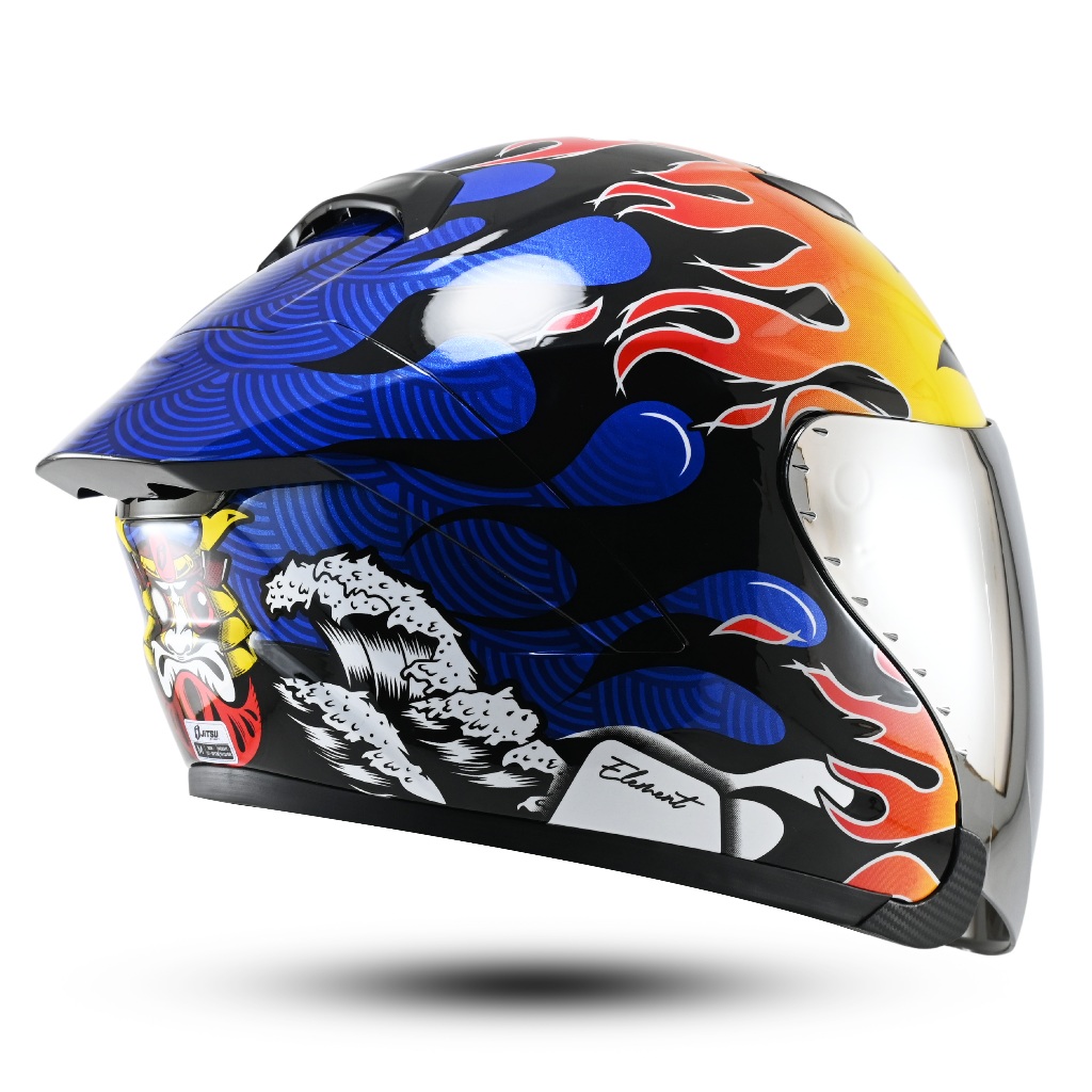 HELM JITSU HALF FACE J-STRIKE MOTIF ELEMENT SPOILER SNI VISOR SILVER PAKET GANTENG ORIGINAL SNI DOT SPECIAL EDITION