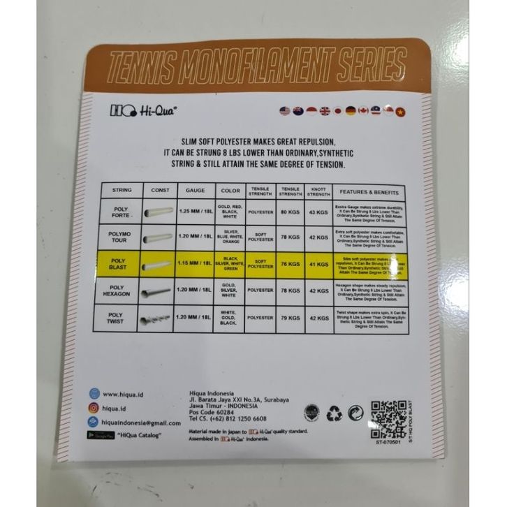 Senar Tenis HIQUA HQ New Polyblast 1.15mm Original