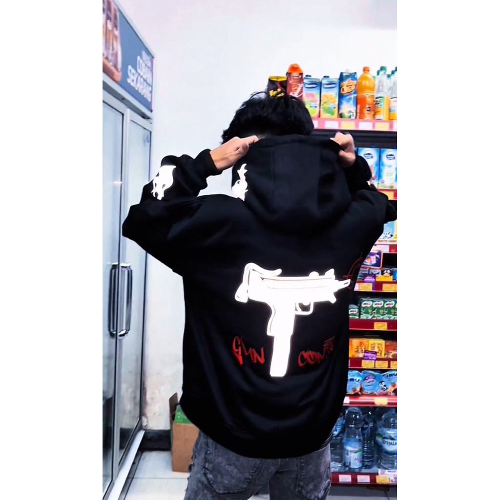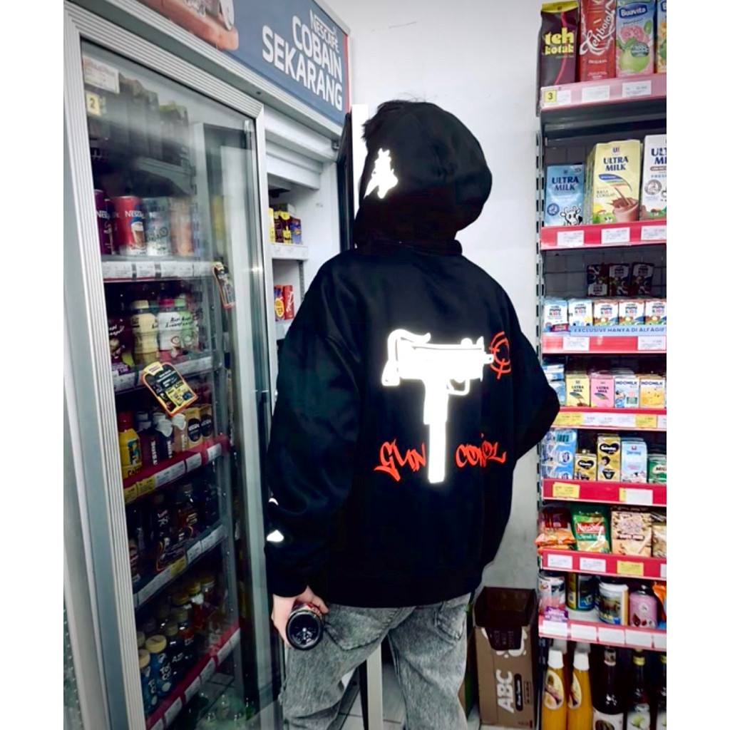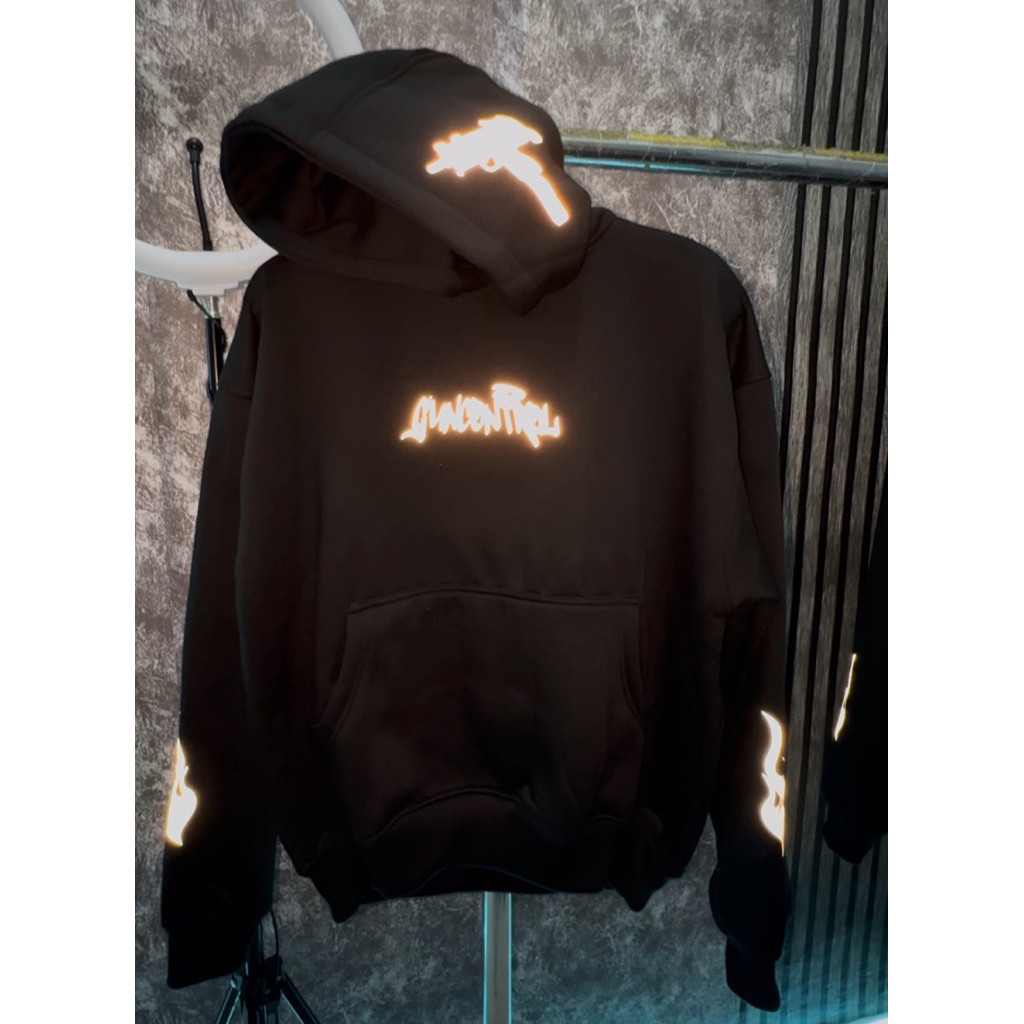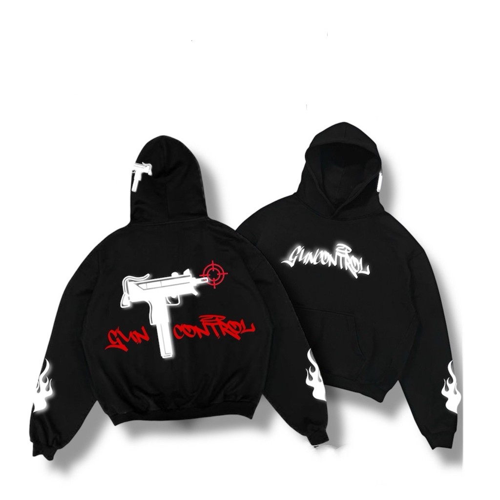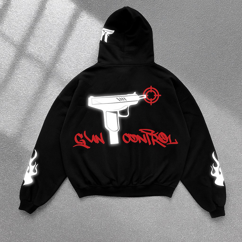 Original Nyala Reflektif Hoodie "GUN CONTROL" V2 Streetwear Tebal Lembut Premium