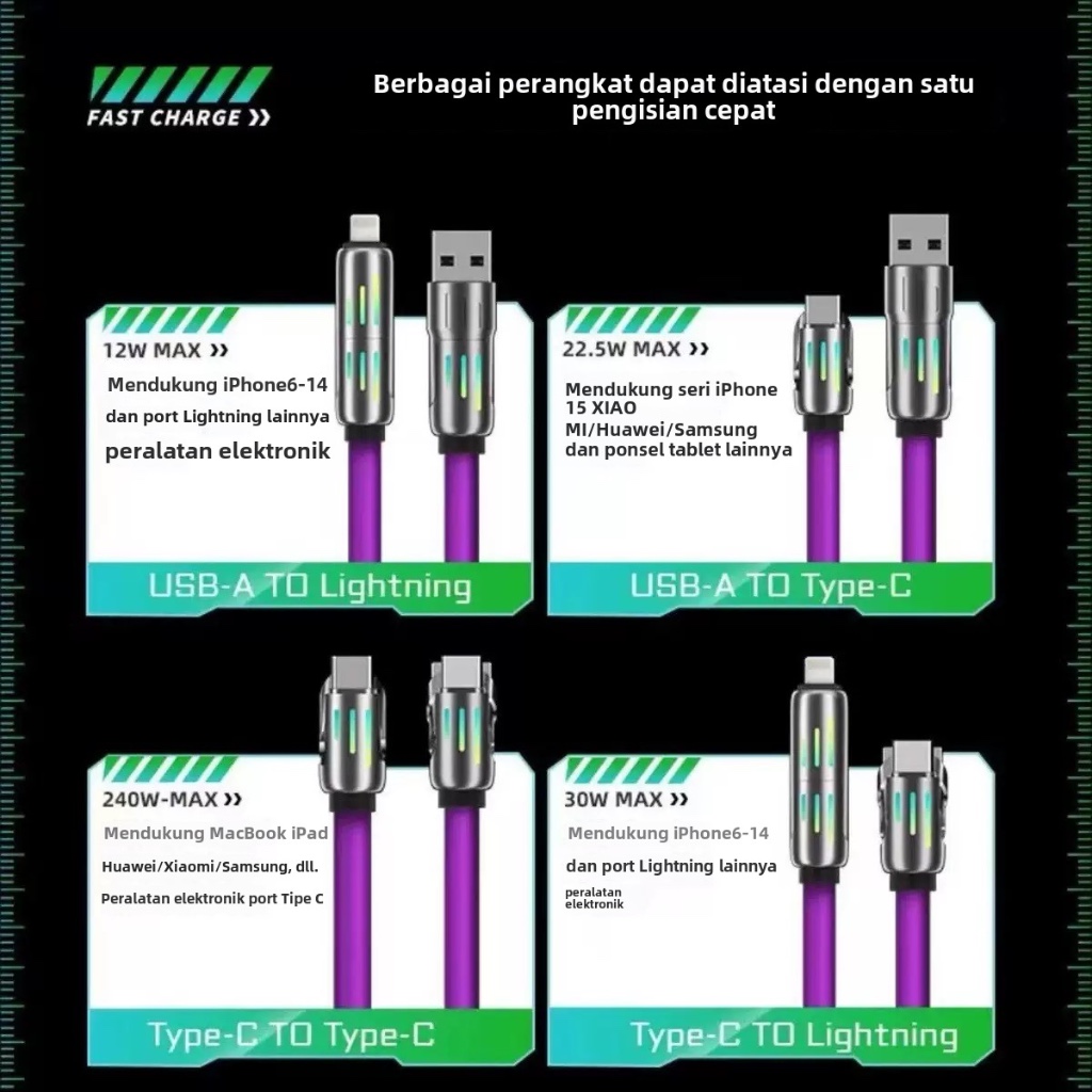 GUKOO Kabel Charger 4in1 240W Fast Charging - USB ke Type-C & Lightning ke Type-C& Type-C ke Type-C