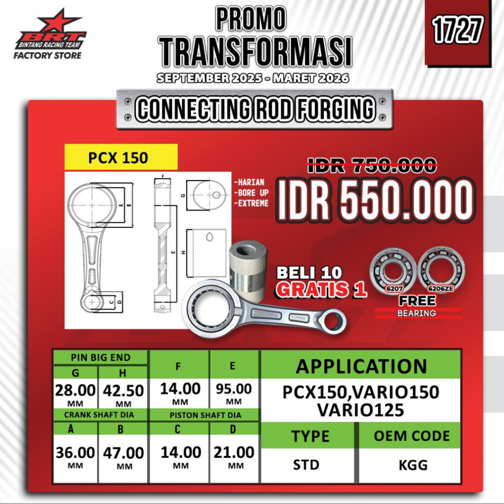 STANG SEHER CONROD FORGED FORGING CNC BRT PCX 150 VARIO 150 VARIO 125