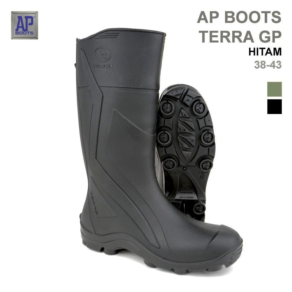 Boots Terra GP Hitam – Boot Anti Air, Kuat & Ekonomis Sepatu Kerja Safety Anti Slip Tahan Air Proyek Bangunan [Katzz Terra GP]