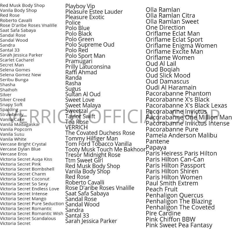 Taylor swift, Selena goms, Vanila cake, Ola citra, Ola ramlan, Kenzo batang, Escada mon, Angel hart, Paris hilton, D&G impratif
