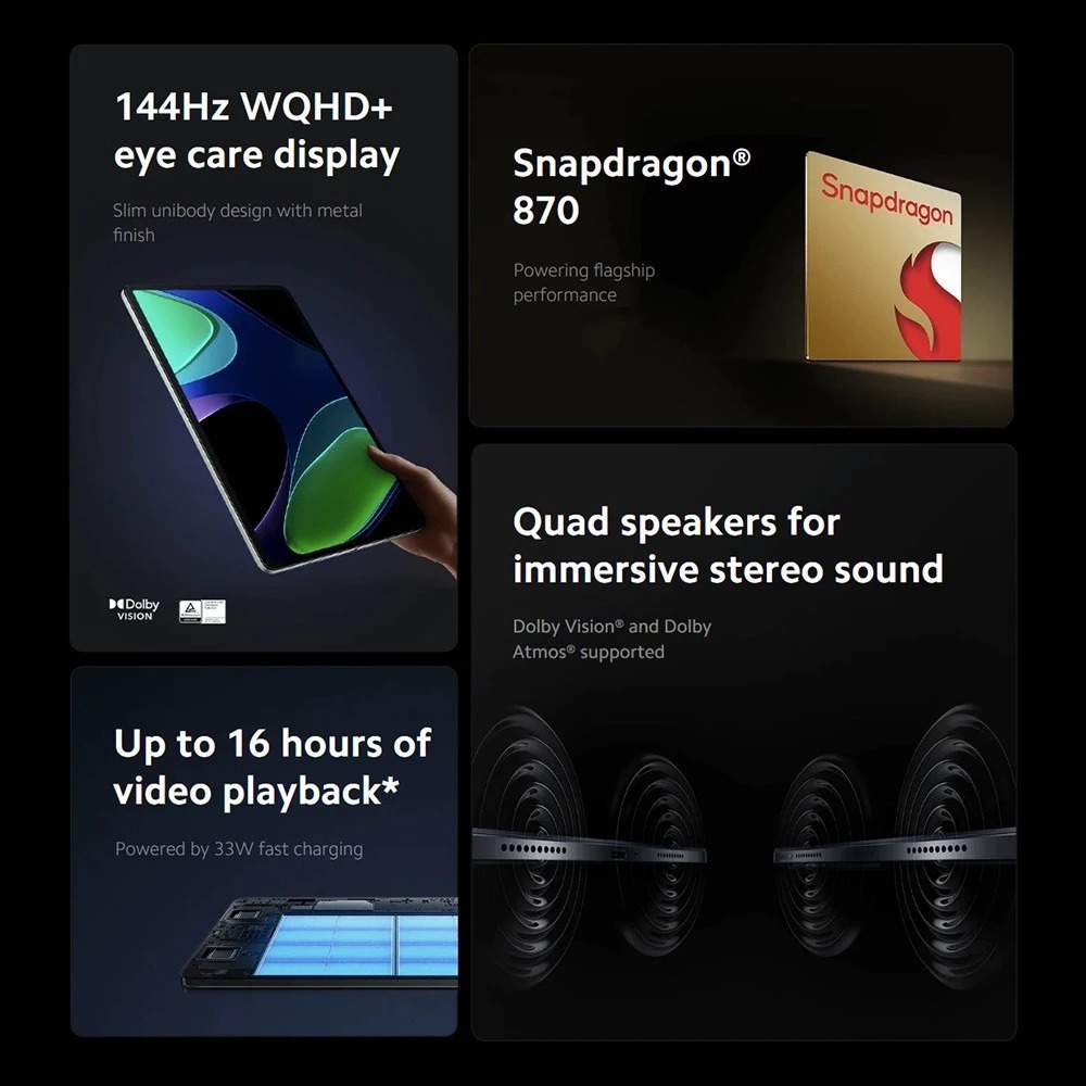XIAOMI 4G TABLET PAD 6 12/512 GB 11-INCH 144HZ DISPLAY SNAPDRAGON 870 TABLET FOR KIDS ANDROID13 PAD