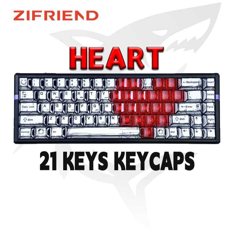 ZIFRIEND HEART 21 KEYS TRANSPARENT CHERRY PROFILE PBT FOR DIY MECHANICAL KEYBOARD KEYCAP