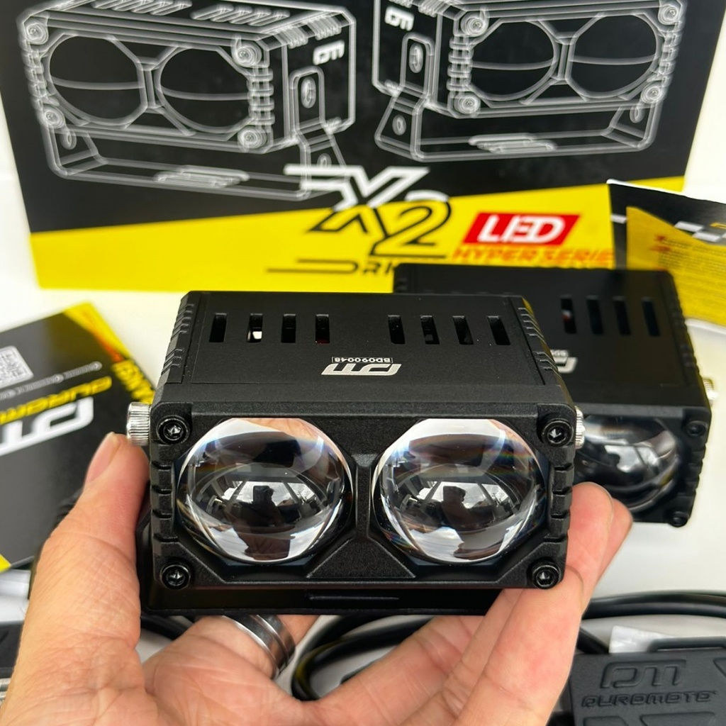 DUROMOTO Lampu Tembak X2 100 WATT Mini laser 2 mata duromoto Driver external plus kipas Foglamp sorot X2 duromoto