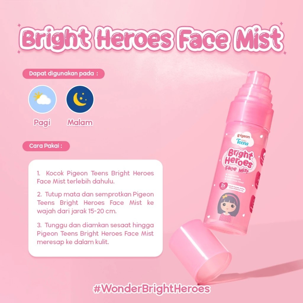 Pigeon Teens Bright Heroes Face Mist 50ml | Mencerahkan kulit | Niacinamide