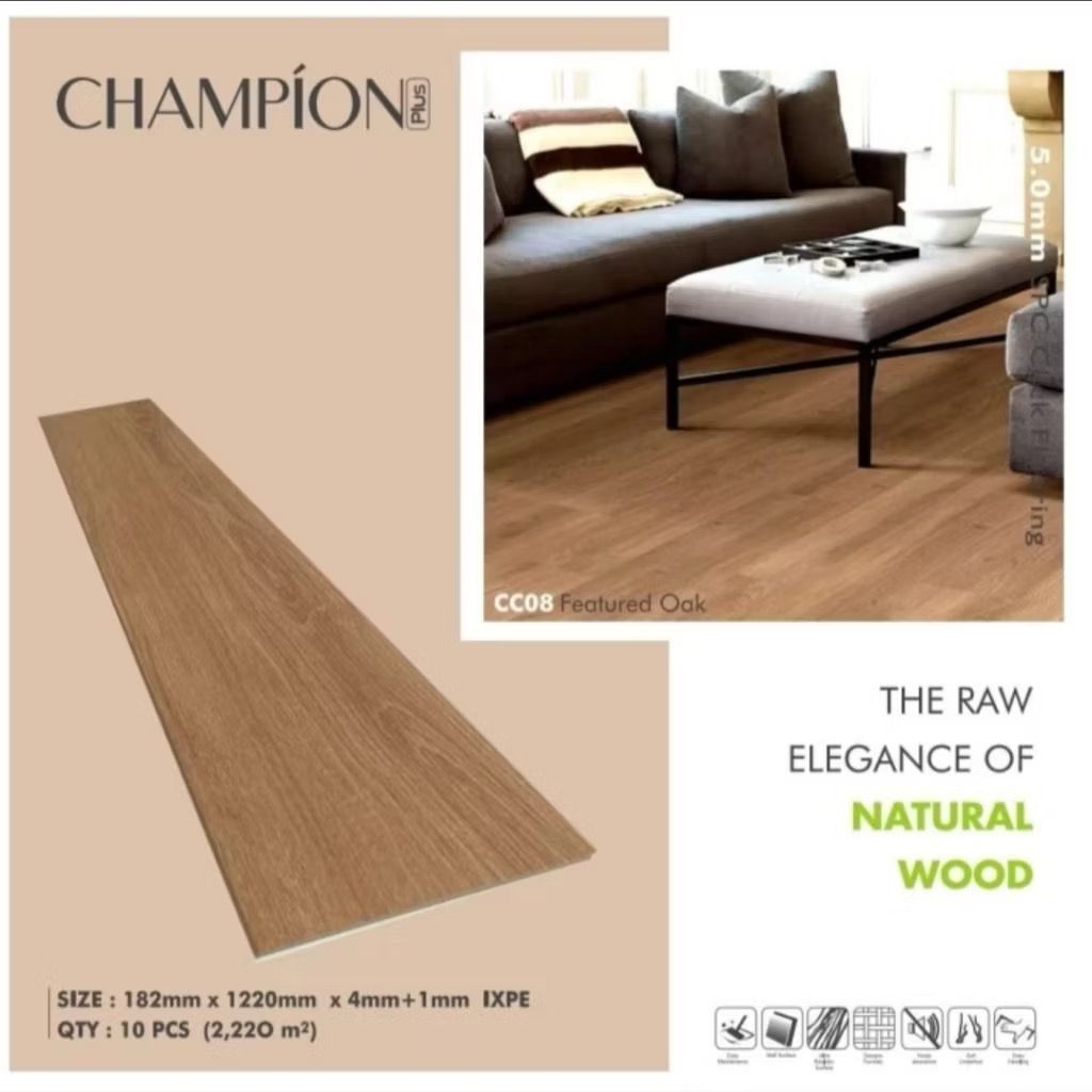 Lantai SPC 5mm Tanpa Lem | Spc Flooring Click | Lantai SPC Motif Kayu Sistem Click Anti Rayap