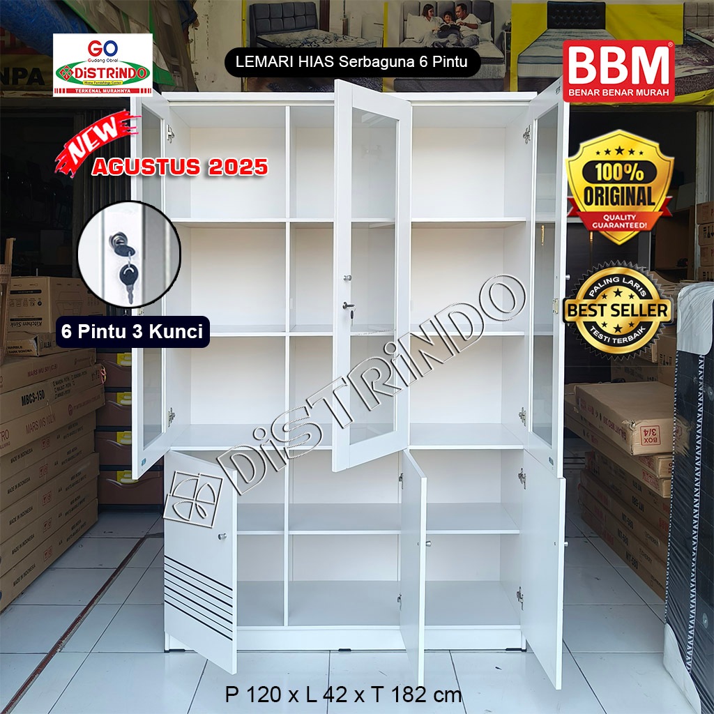 Distrindo - Bufet Lemari Hias Etalase Pintu Kaca + 2 Kunci Serbaguna Untuk Tas, Kosmetik, Konfeksi
