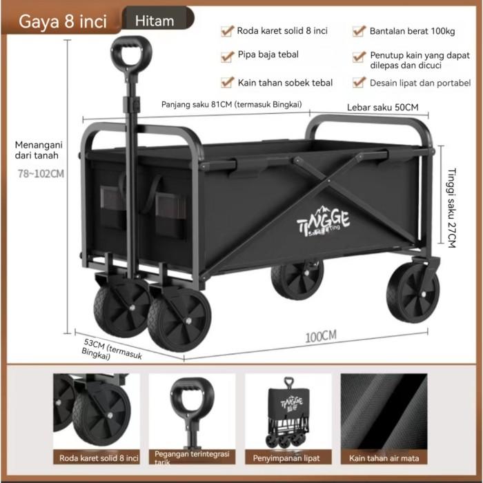 PROMO TERBATAS HIGHLINE TROLI BARANG TROLI CAMPING TROLI LIPAT KERANJANG 74 KHAKI