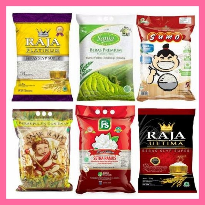 Beras 5 kg 1 L sumo sunmi sania Topi koki Raja platinum ultima fs setra ramos rojolele