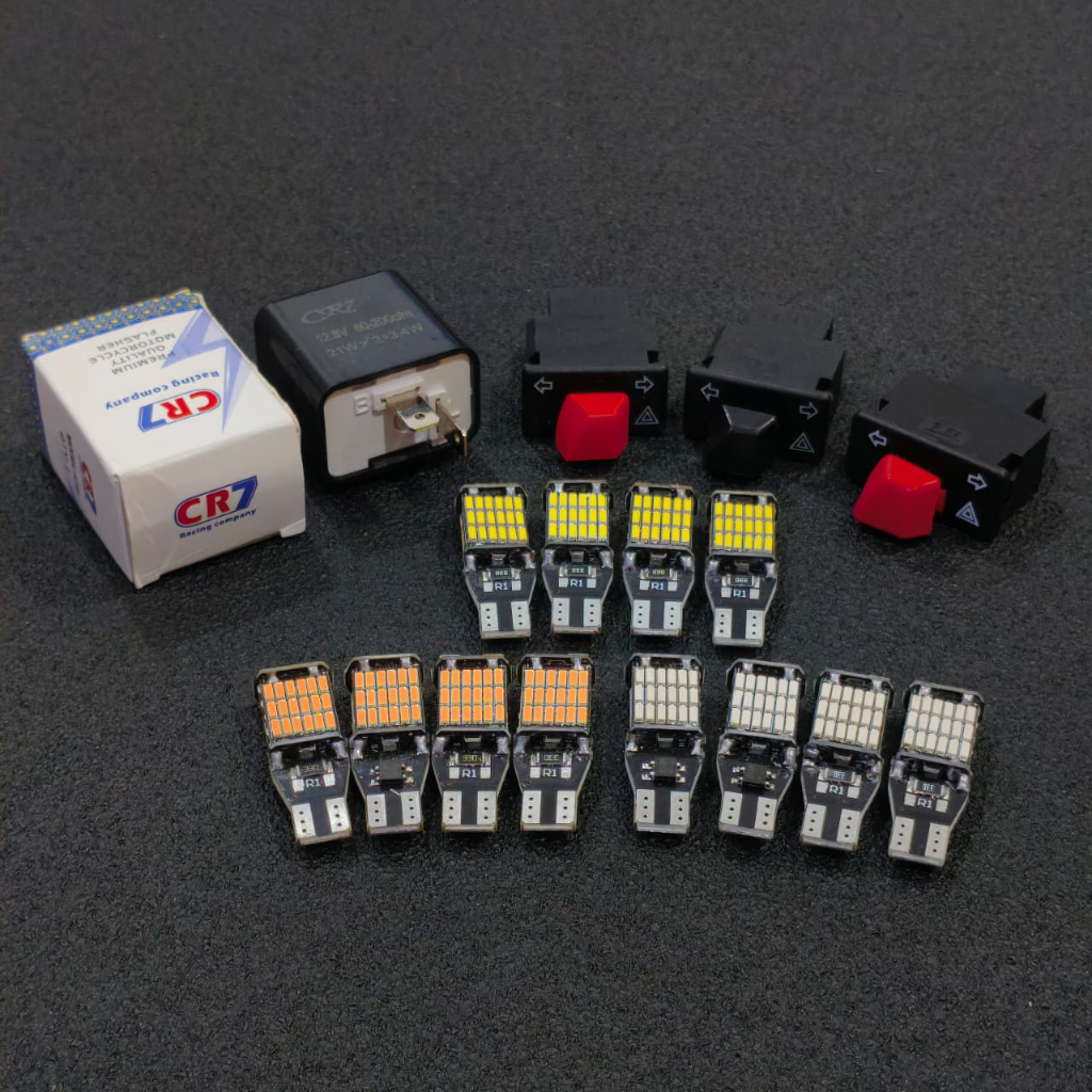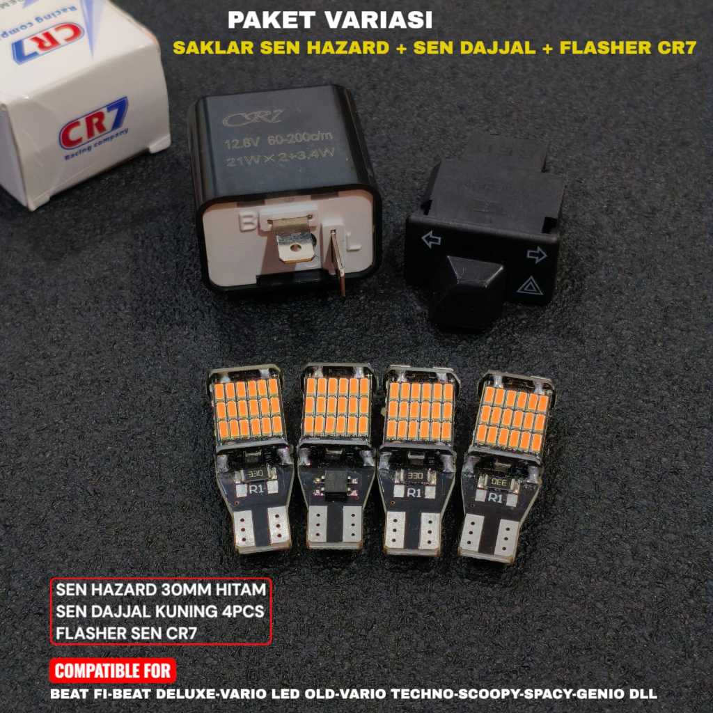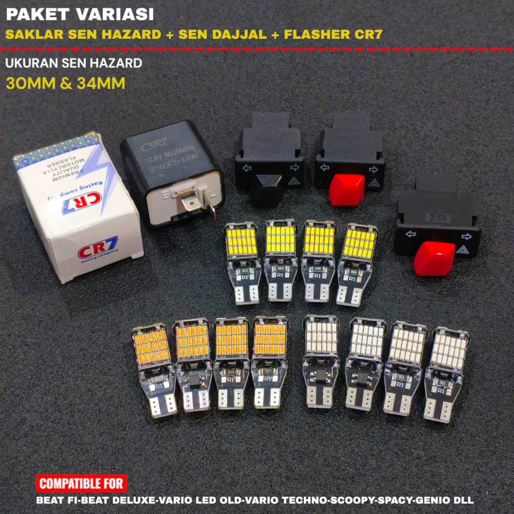 PAKET SAKLAR SEN HAZARD PLUS SEN DAJJAL 45 MATA T10 4PCS PLUS FLASHER SEN CR7 PENGATUR KECEPATAN KEDIP PNP BEAT VARIO SC