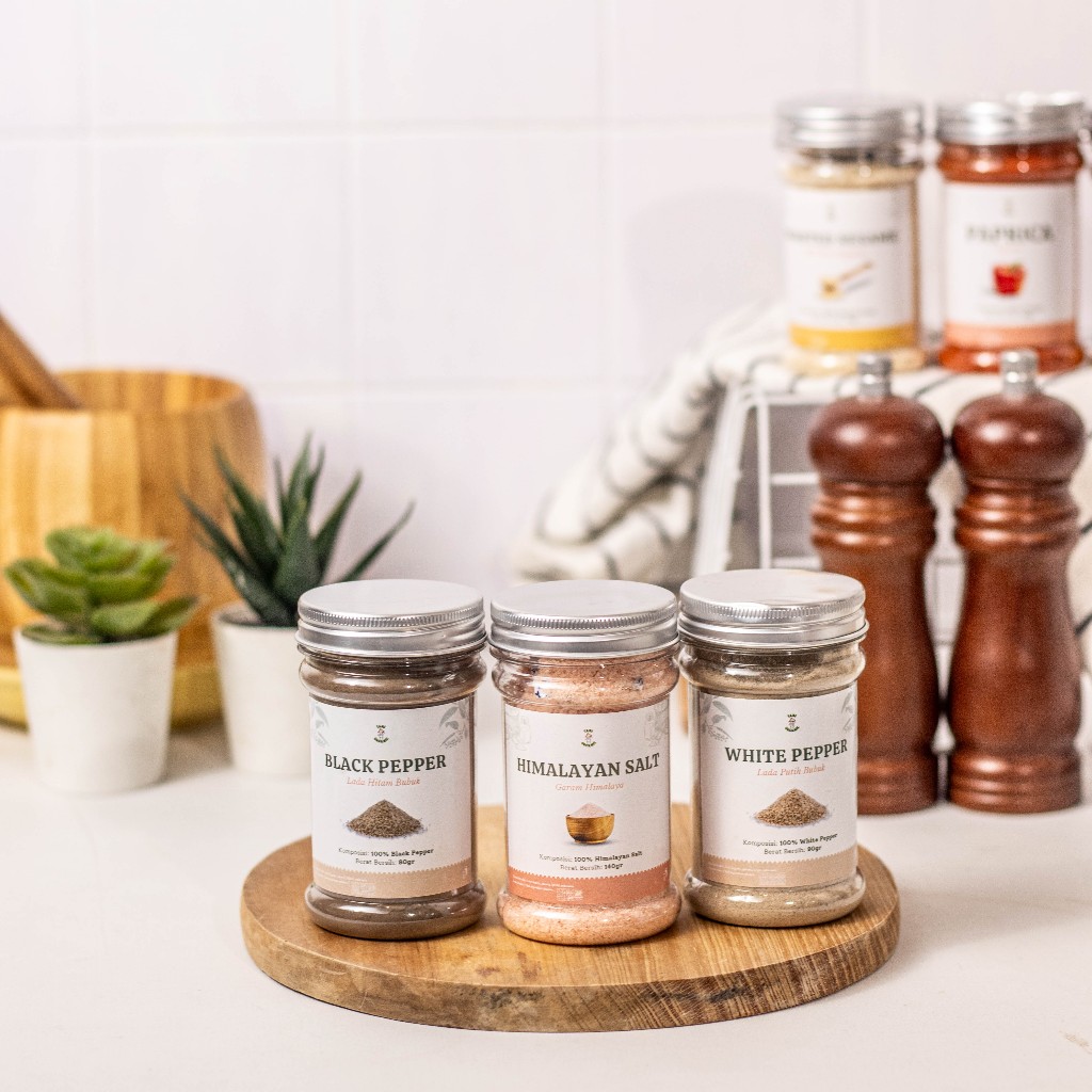 Chili Cabe, Curcuma / Temulawak, BlackpepperLadaHitam, Ginger Jahe, Salted Egg, Wijen Putih Panggang, WhitepepperLadaPutih, Celery / Seledri, Paprika Powder, Oregano