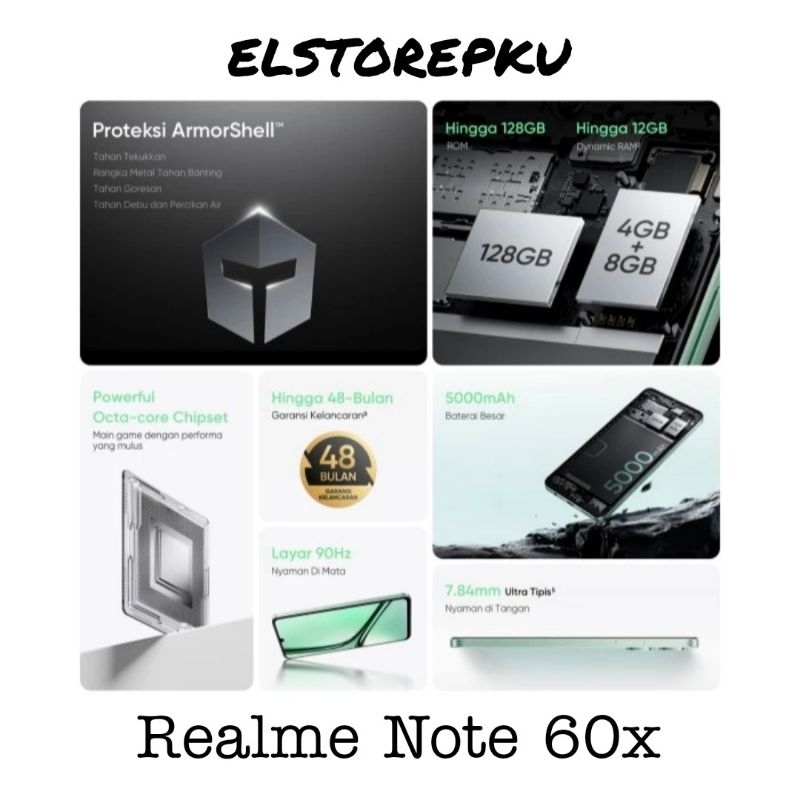[Star] Realme Note 60x 4/128 + 4/64. Rangka Metal Kuat. rating IP54 Layar 90Hz Ram Up to 8GB (4GB+4GB) resmi 8GB 4GB 128