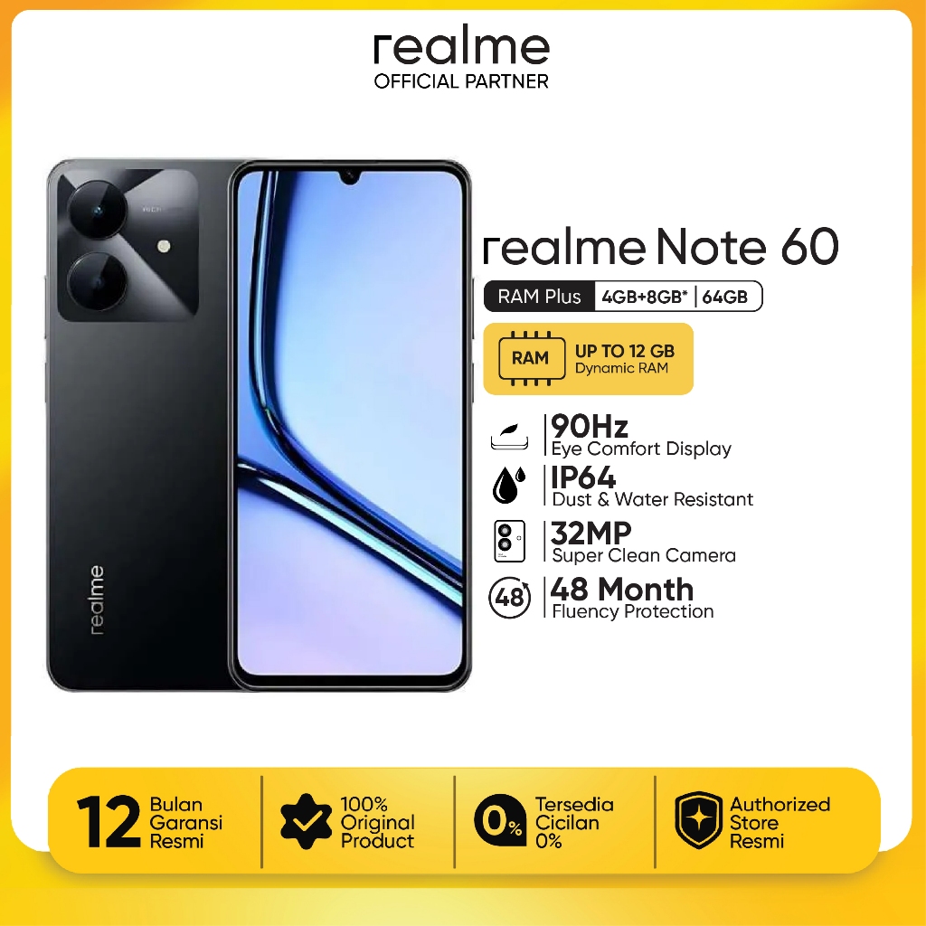 [Star] realme Note 60 4GB+8GB*|64GB (ArmorShell™ Protection | TÜV Rheinland | 32MP Camera| 48-month Fluency | IP64 Dust