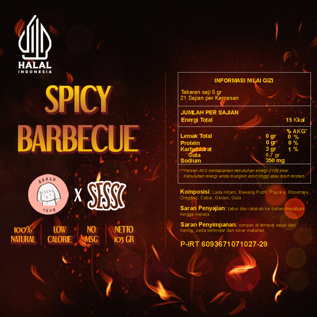 Sessi Bumbu Diet Rendah Kalori Marinasi Instan Rasa Spicy BBQ Dry Rub - NO MSG