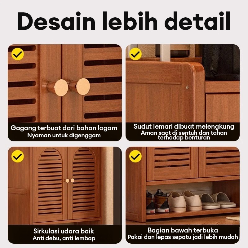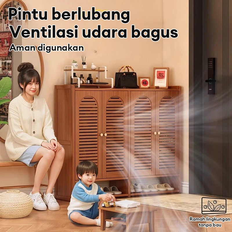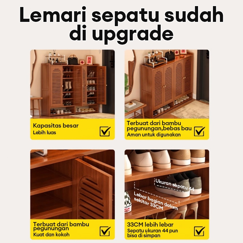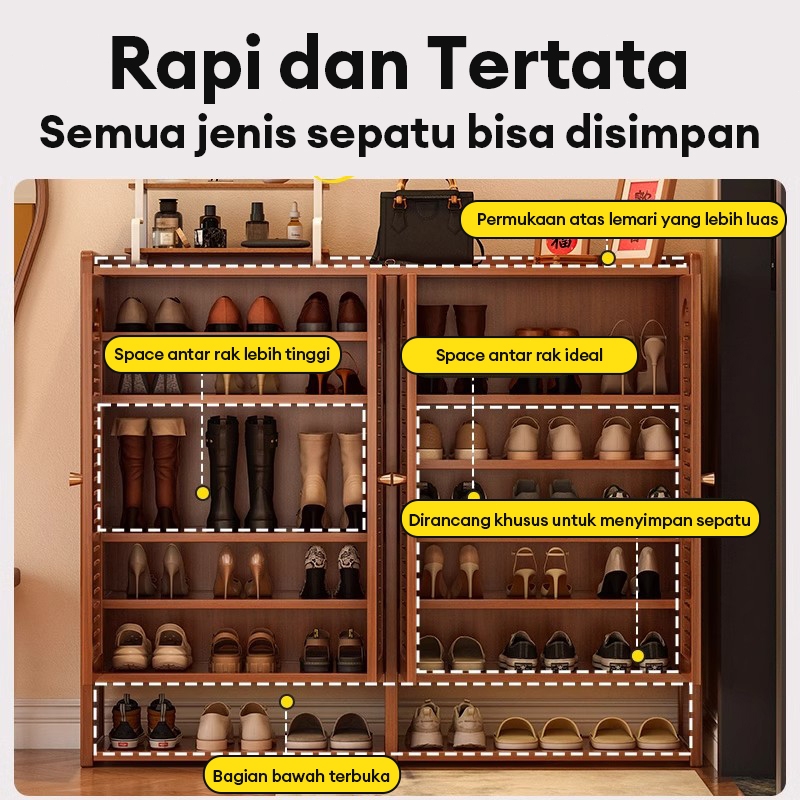 Lemari Sepatu Bambu Almari Kasut 6/7/8 Lapis Kabinet Kapasitas Besar Kasut Bertutup Rak Sepatu Almari