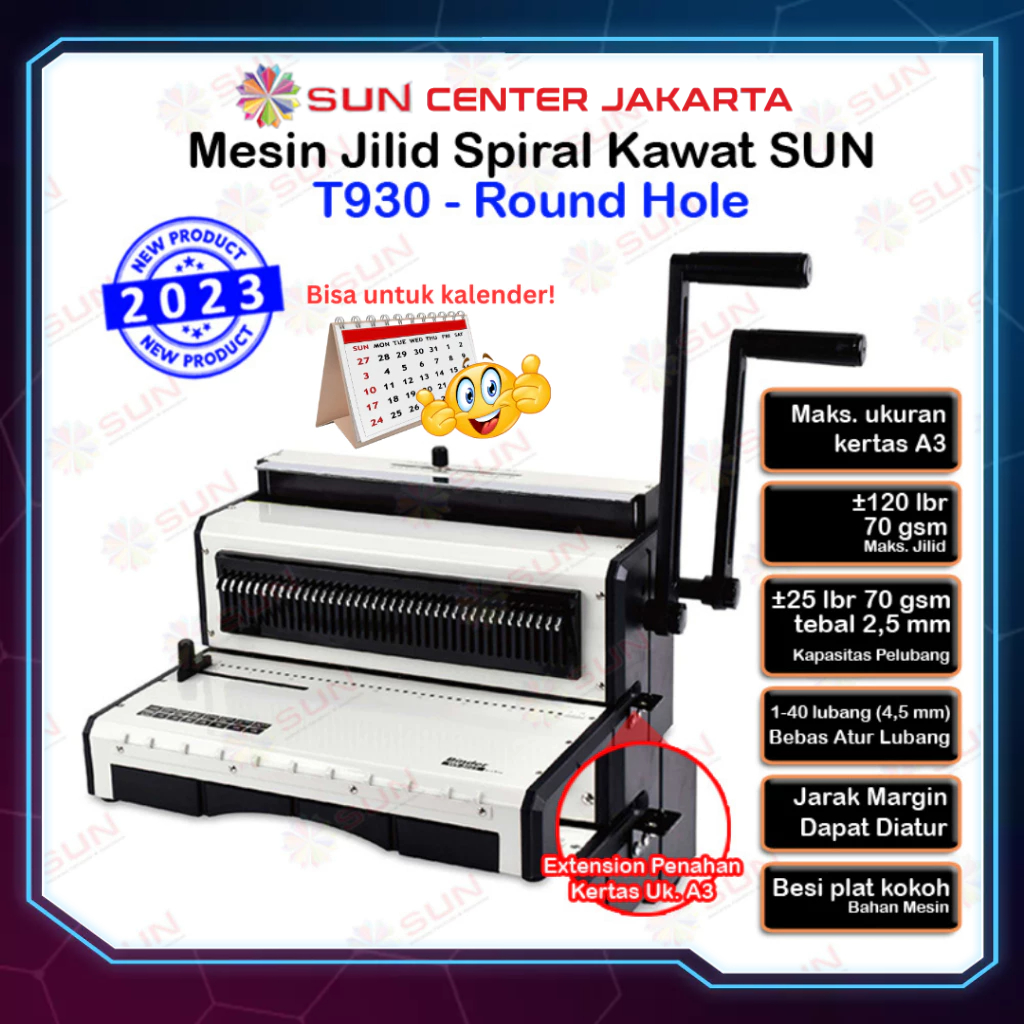 Mesin Jilid Spiral Kawat A3 Heavy Duty T930 Bentuk Lubang Bulat / Kotak