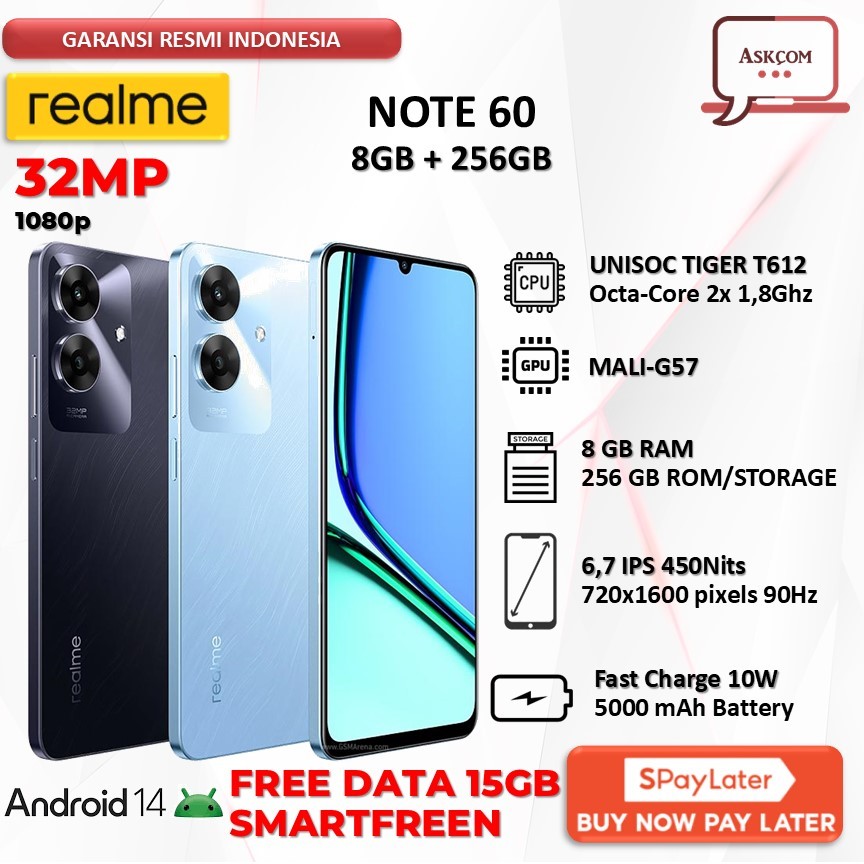 [Star] REALME NOTE 60 8GB 256GB UNISOC TIGER T612 OCTA CORE 32MP 5000mAh BLUE MARBLE BALCK GARANSI RESMI