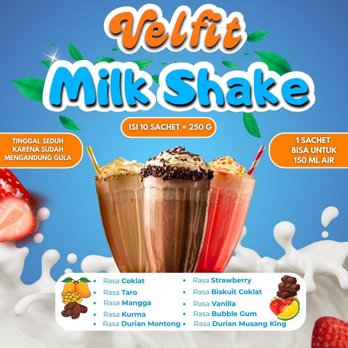 DP 0 MINUMAN SERBUK VELFIT MILK SHAKE 250G10 SACHET 10 RASA PRAKTIS & HEMAT PER SACHET 25G COKLAT 5PCS COKLAT 5PCS