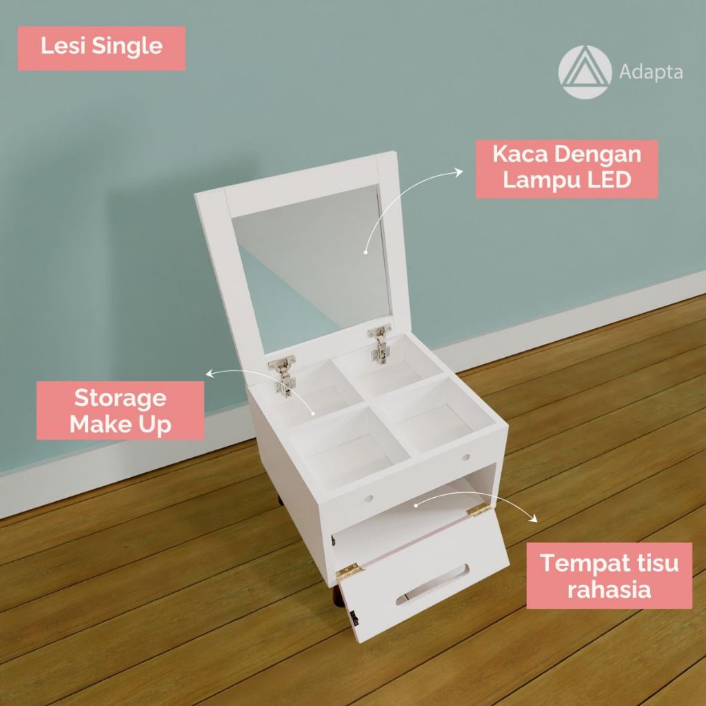 [Mall] Adapta Meja Rias Mini Lesehan Aesthetic Anak Perempuan Minimalis Pink Putih Cantik LESI-E6&E8