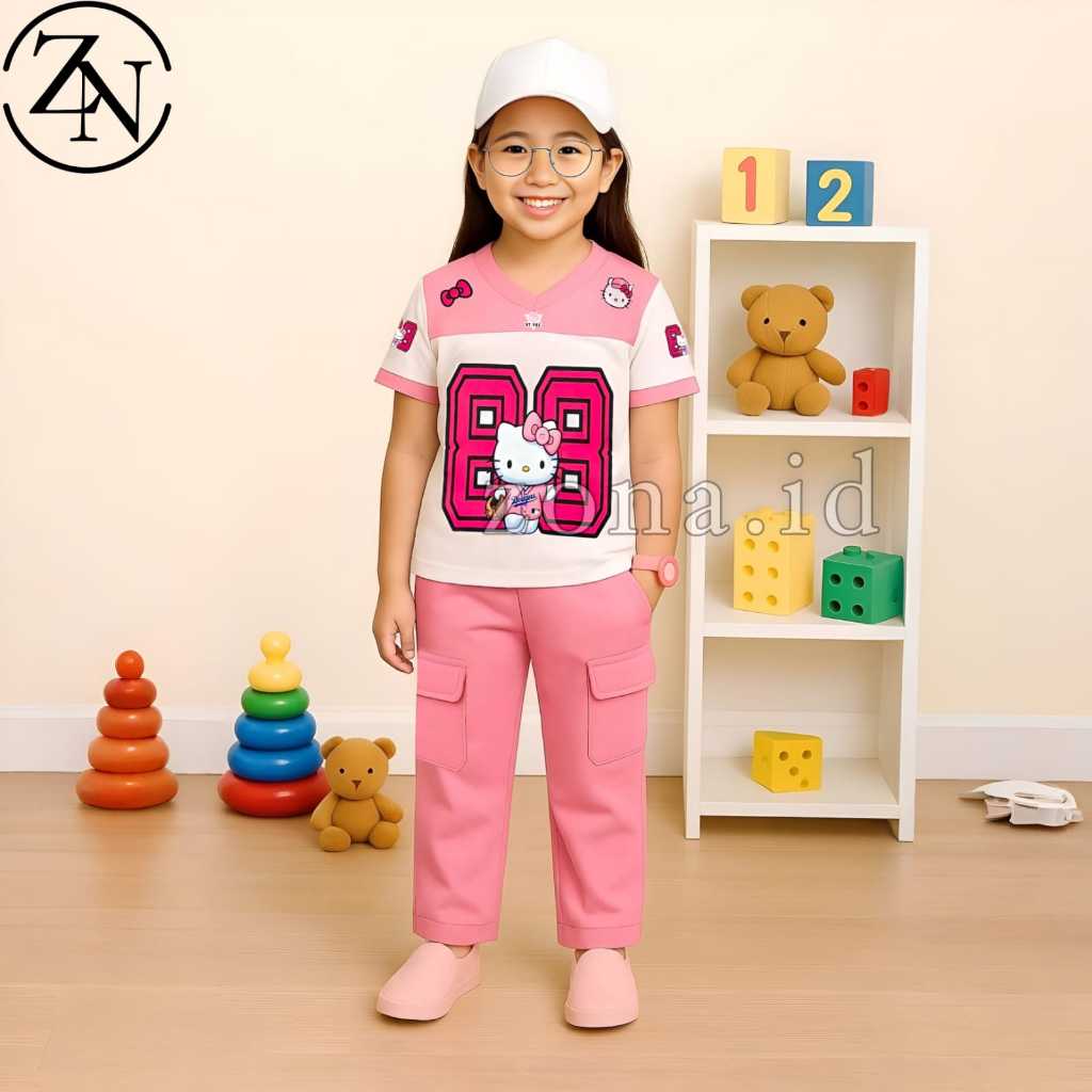 Setelan Anak Perempuan Jersey Kuromi Celana Kargo 3-12 Tahun Terlaris / Setelan Anak Perempuan Viral
