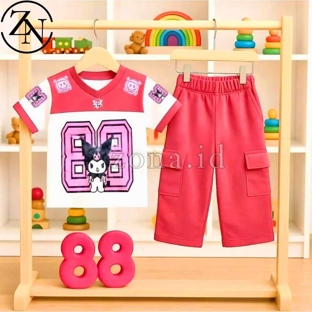 Setelan Anak Perempuan Jersey Kuromi Celana Kargo 3-12 Tahun Terlaris / Setelan Anak Perempuan Viral