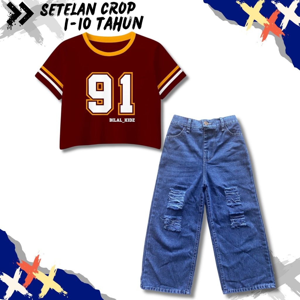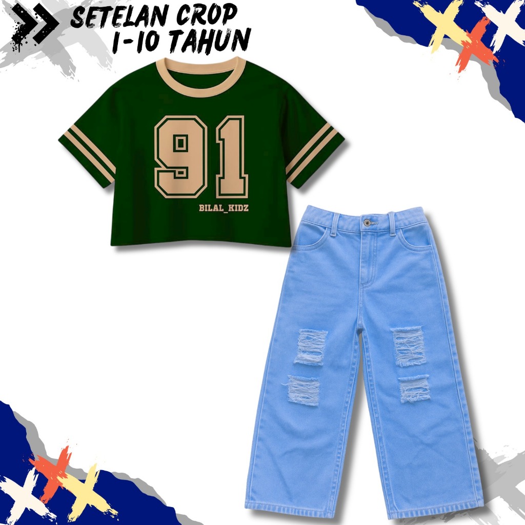 SETELAN CELANA KULOT SOBEK DAN KAOS CROP TOP ANAK PEREMPUAN - lvc04
