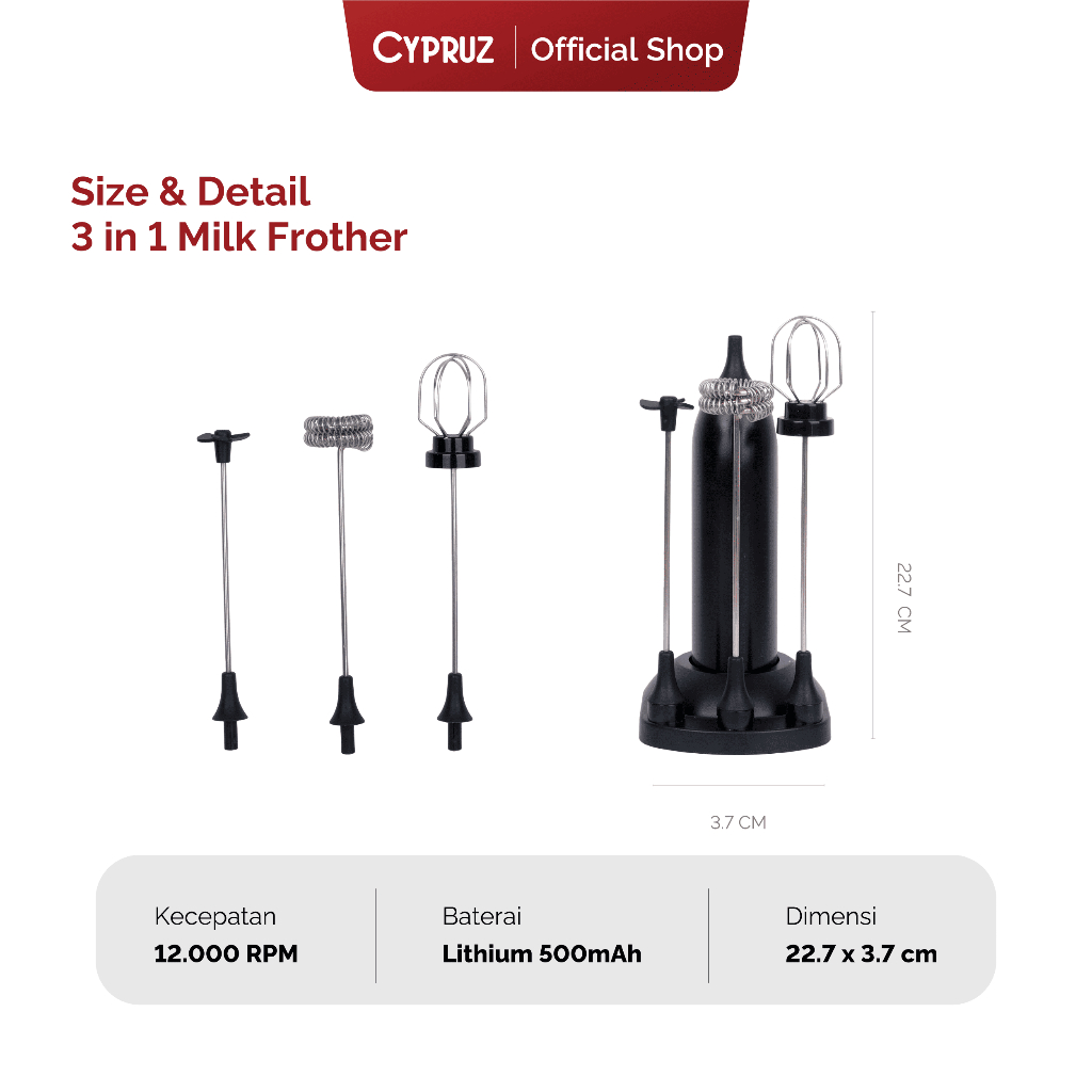 [Star] Cypruz 3in1 Milk Frother Elektrik Pengocok Susu dan Matcha USB Type-C Foam Latte Cappuccino