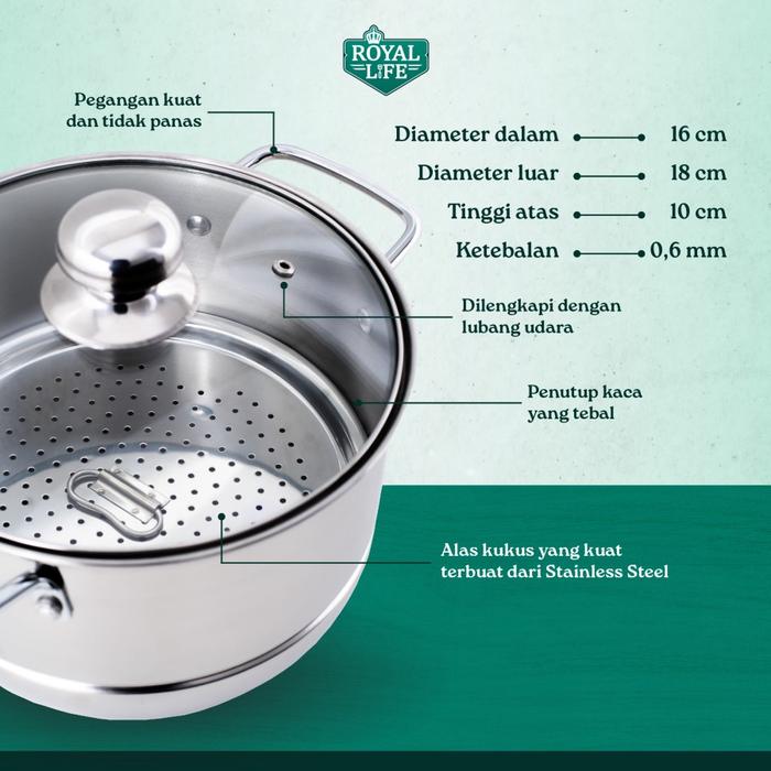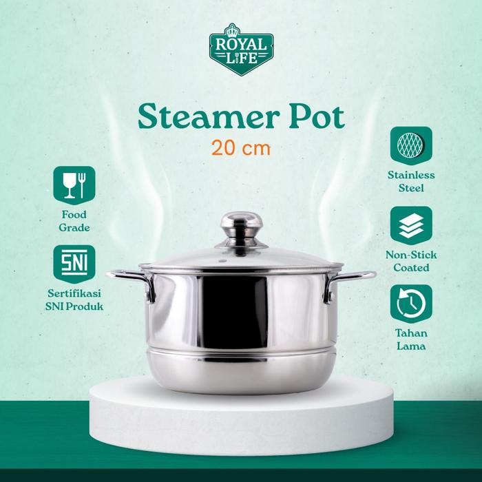 ROYAL LIFE Steamer Pot / Panci Kukus / Langseng Stainless Steel 16 cm, 20 cm, 22 cm, 24 cm, 26 cm,