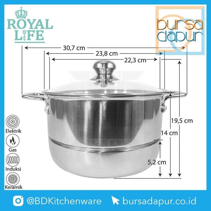 Royal Life Stainless Langseng / Steamer Pot / Kukusan 22 cm