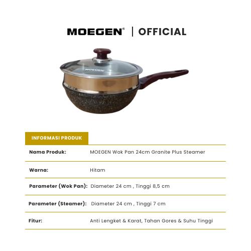 MOEGEN Wok Pan 24 cm Granite Plus Steamer / Kukusan Anti Lengket Serbaguna